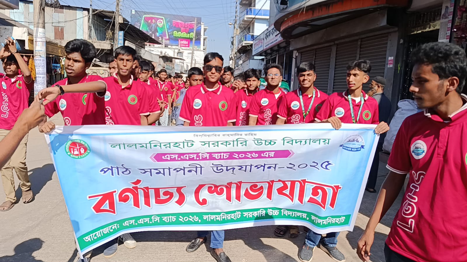 লালমনিরহাটে এস.এস.সি ব্যাচ ২০২৬ এর পাঠ সমাপনী উদযাপন বর্ণাঢ্য শোভাযাত্রা অনুষ্ঠিত
