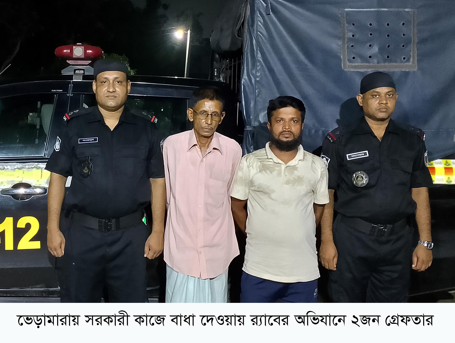 র্যাব-১২, এর সিপিসি-১ কুষ্টিয়া ক্যাম্পের অভিযানে ভেড়ামারায় সরকারী কাজে বাধা দেওয়ায় র্যাবের অভিযানে দুই জনকে গ্রেফতার করেছে। গ্রেফতারকৃতরা হলেন আলমগীর