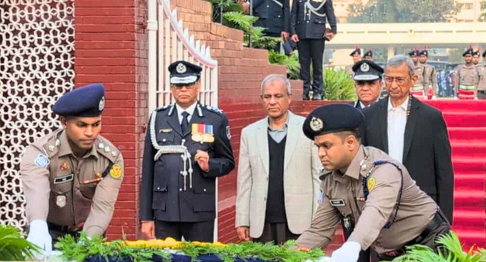 রাজারবাগ পুলিশ স্মৃতিস্তম্ভে স্বরাষ্ট্র উপদেষ্টা ও আইজিপির শ্রদ্ধা