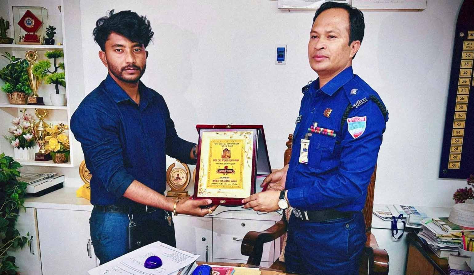 চুয়াডাঙ্গা সদর থানার অফিসার ইনচার্জকে তাওহীদ গ্রুপের পক্ষ থেকে সম্মাননা ক্রেস্ট প্রদান