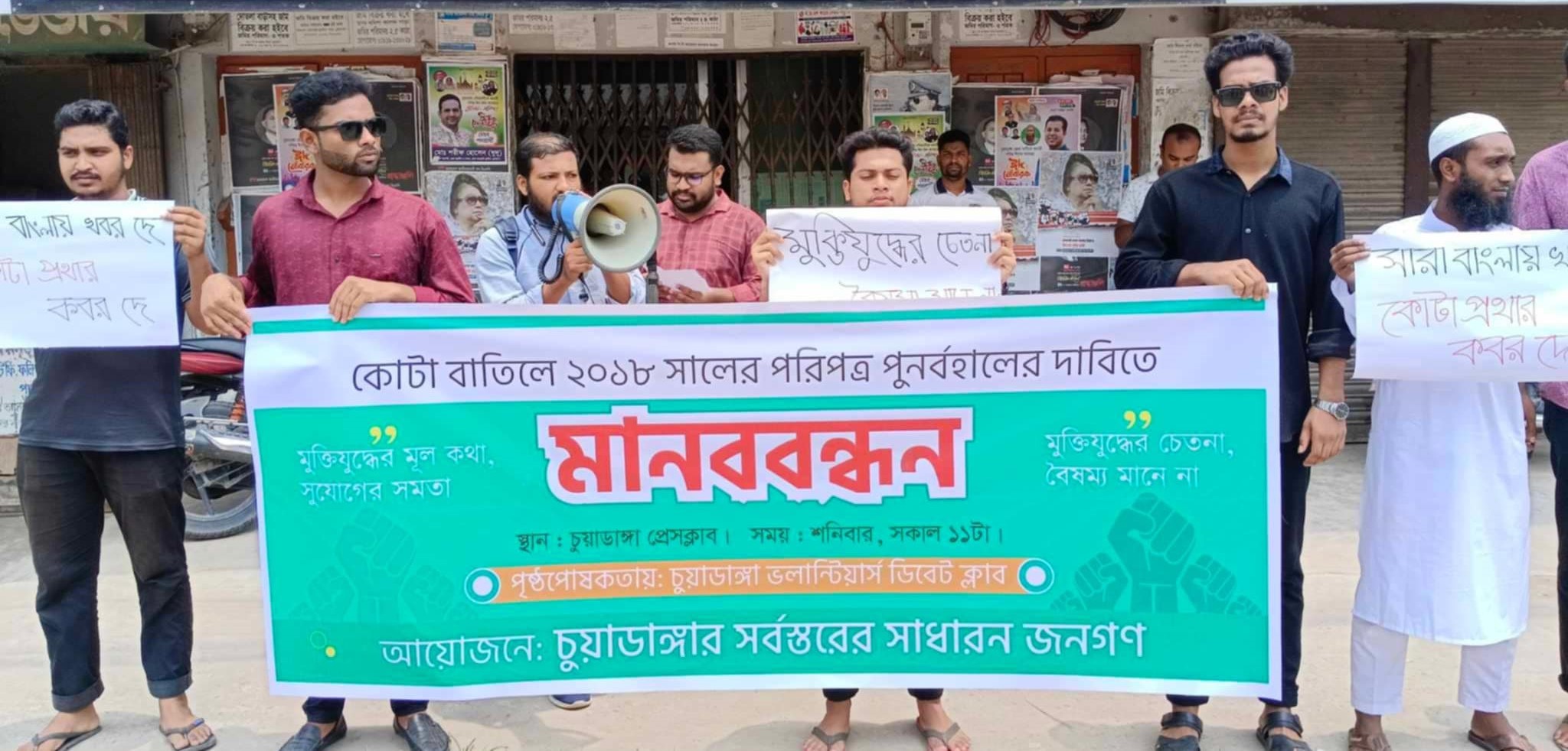 কোটা বাতিলে ২০১৮ সালের পরিপত্র পুনর্বহালের দাবিতে চুয়াডাঙ্গায় মানববন্ধন